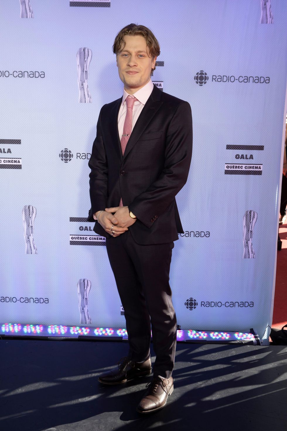 Le beau Antoine Olivier Pilon est venu dans un tailleur Sartorialto bien ajusté. On aime le rose de la chemise et de la cravate qui ajoute une petite touche fun à la tenue.