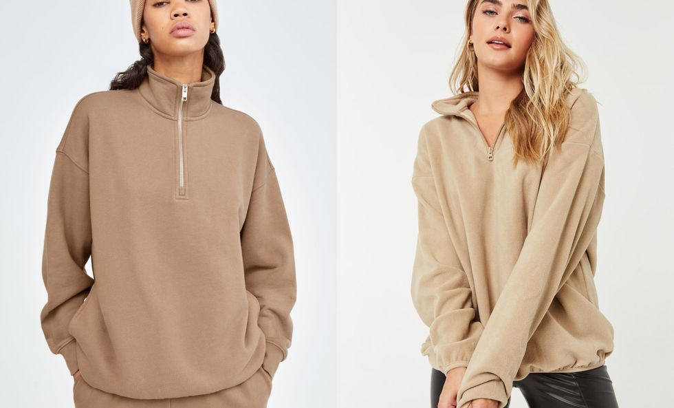 Details: The Tna Cozy Fleece Mega ¼ Zip Sweatshirt (left) is the perfect cold-weather top but for $80, you could get all three colours (white, brown, tan) of the same style at Ardene and still have money left over in the end.