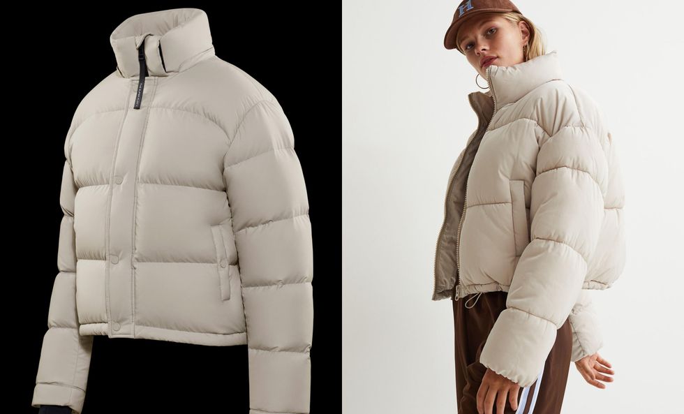 Details: If you want a lighter colour and shorter cut like The Super Puff Shorty (left, $225), you can add this H&M version that's way cheaper to your cart. Another similar option is this Short Hooded Puffer Jacket from Ardene for $55 that's available in seven colours.