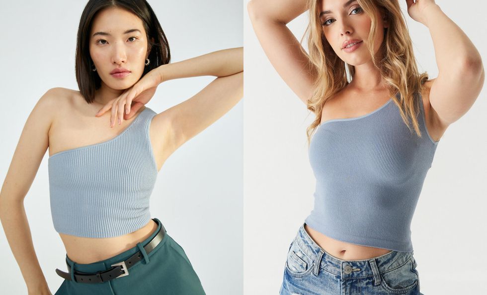 Details: You can find a top similar to the Babaton Sculpt Knit Criss Cross Tank (left, $58) from SHEIN in a bunch of similar colours like apricot and lilac. The only difference is that the SHEIN version isn't ribbed.