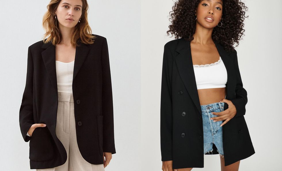 Details: Now's a good time to grab this dupe for the Wilfred Sorrento Blazer (left, $228) at Garage because it's perfect for layering during the fall. The only slight difference is that the cut is more rounded on the Aritzia version.