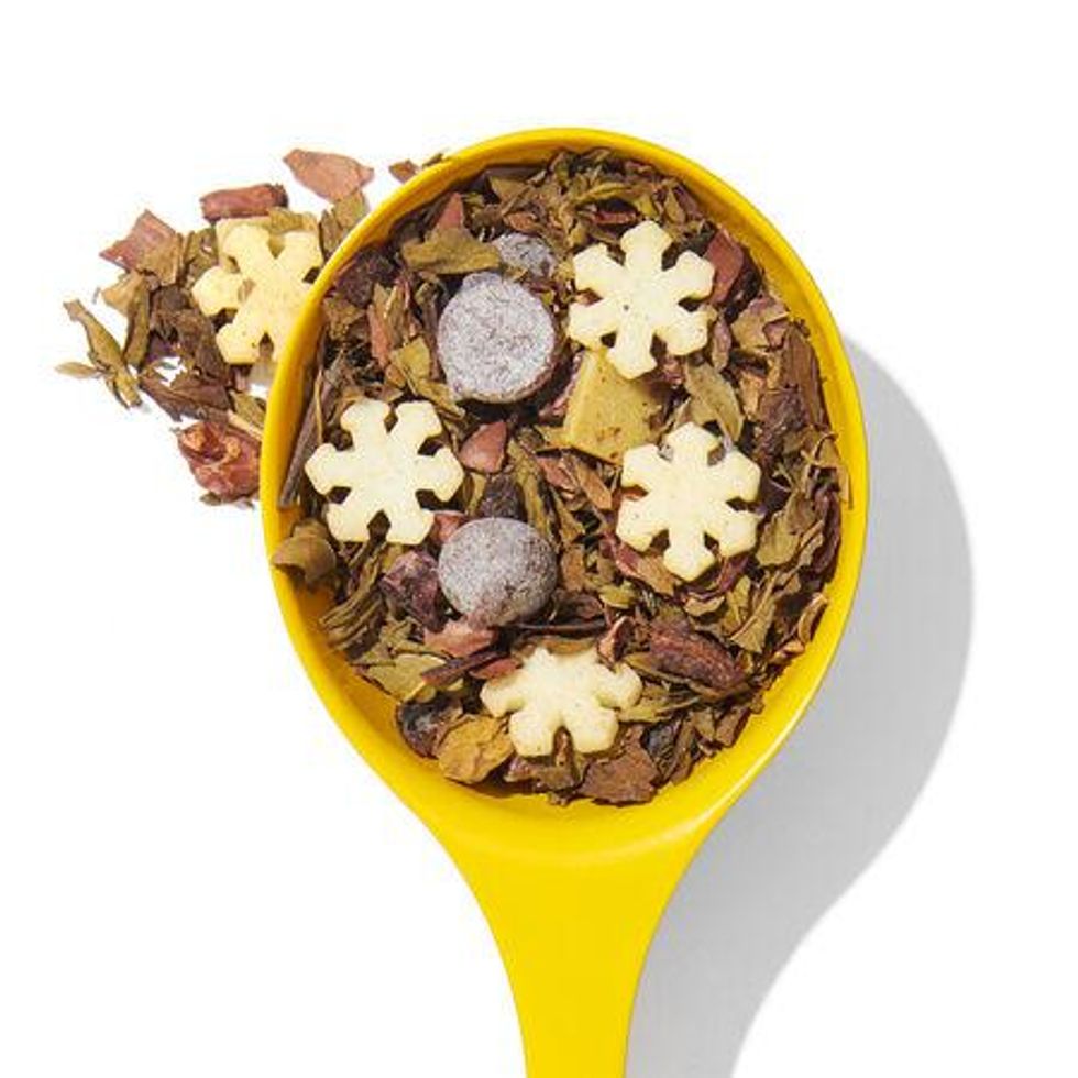 This herbal blend from DavidsTEA is a low-caffeine way to enjoy a warm drink on a cold day. It tastes like a chocolate mint and has these fun snowflake sprinkles to make it extra fun.