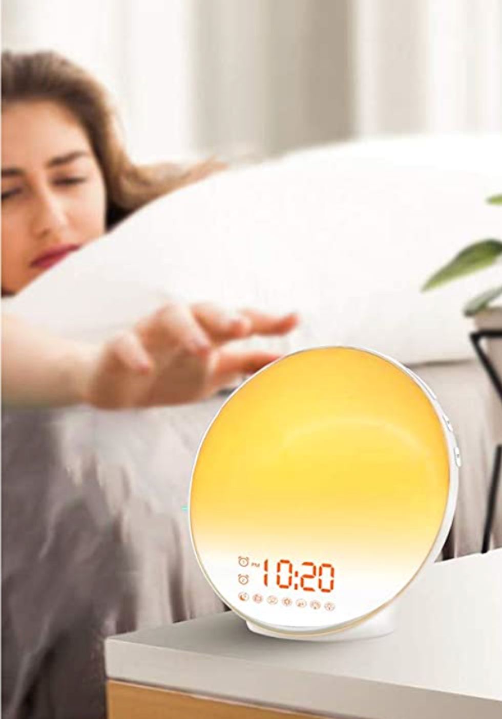 You can make mornings a little brighter with this sunrise alarm clock that'll simulate a warm light to wake you up. It also has a sunset feature for falling asleep, an FM radio, built-in sounds and different light settings for every mood.