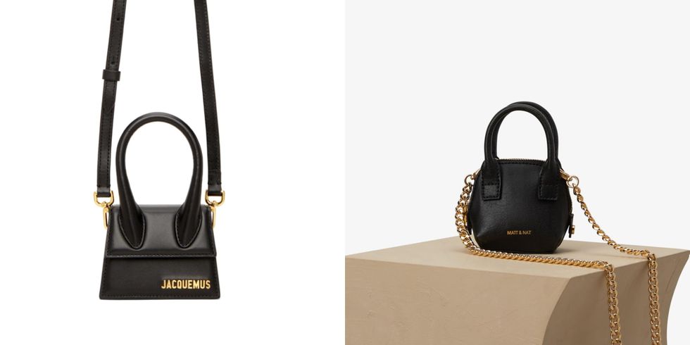 Details: The teeny-tiny Jacquemus Le Chiquito bag (left) barely fits a lipstick, gum and some credit cards—but it is so darn cute to look at! At $600 bucks though, you can save your money and opt for this equally micro bag from Matt & Nat instead.