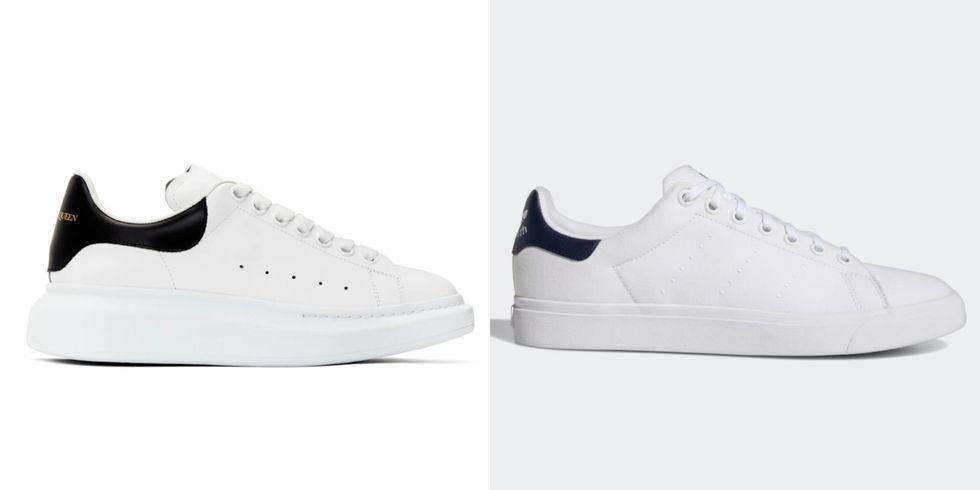 Details: The Alexander McQueen Oversized Sneakers (left, $620) are expensive for an everyday shoe that'll probably meet some wear and tear over time (hello, Canadian weather!). The Stan Smith Originals on the right are made with a similar fabric but it's a closer match to the sole.