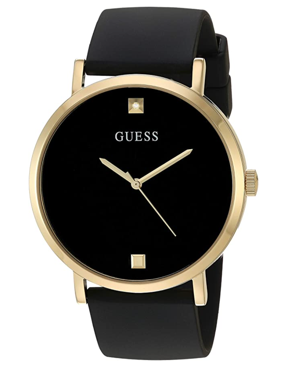 Details: This black and gold watch with a genuine diamond dial is the perfect match for someone with an ultra-minimalist style. It comes with a gold stainless steel case you can store it in when you're not wearing it.