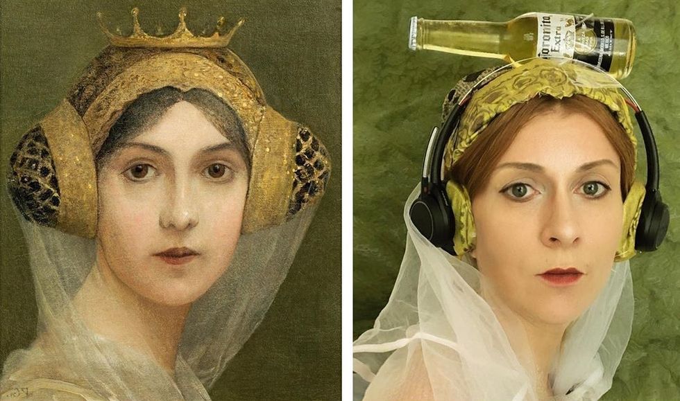 Since museums and art galleries have been closed, there are some artistic (and super clever) folks who have come up with a creative way to stay busy: recreating famous artwork at home. All you need is a few common objects you have lying around, a well-known painting or sculpture to work off of, and some serious creativity.