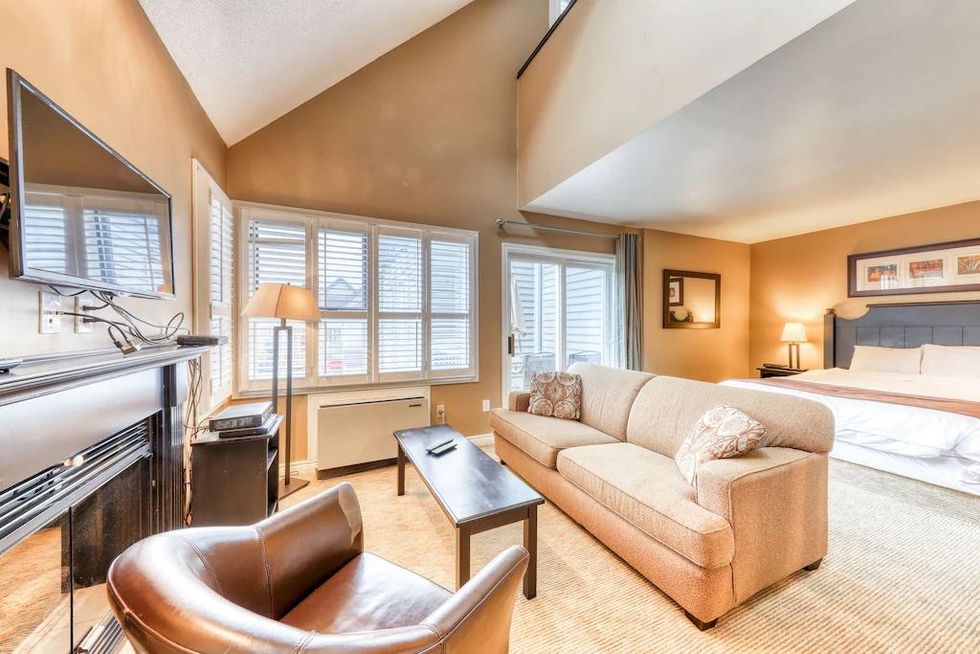 Also located at North Creek Resort is this bright and airy studio with a full kitchen, flat-screen TV and electric fireplace to set the mood. There's also a furnished deck where you can sip your morning coffee and breathe in some of that crisp mountain air.