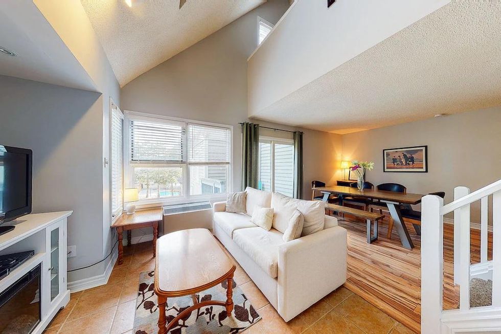 Reviews on Vrbo say this rental is "the perfect girls' getaway." It has three beds so it can comfortably sleep up to six people but only one bathroom! It's a completely-renovated, ground-level, resort condo in Cachet Crossing.