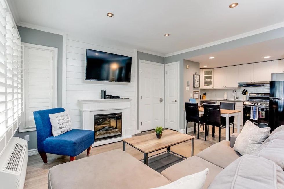Another rental perfect for a romantic couples getaway is this modern and chic studio on the ground floor steps away from Blue Mountain. The renters say a bonus welcome gift is provided (like a bottle of wine or breakfast items). FYI: pets and children are not allowed.