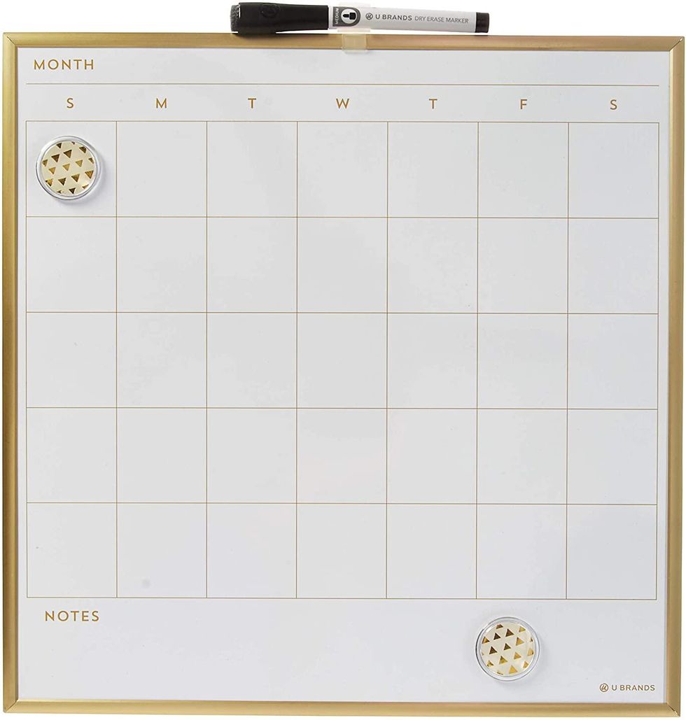 Details: You can hang this stylish dry-erase calendar above your desk to help you manage your busy schedule. It comes with a dry erase marker, mounting materials and two magnets.