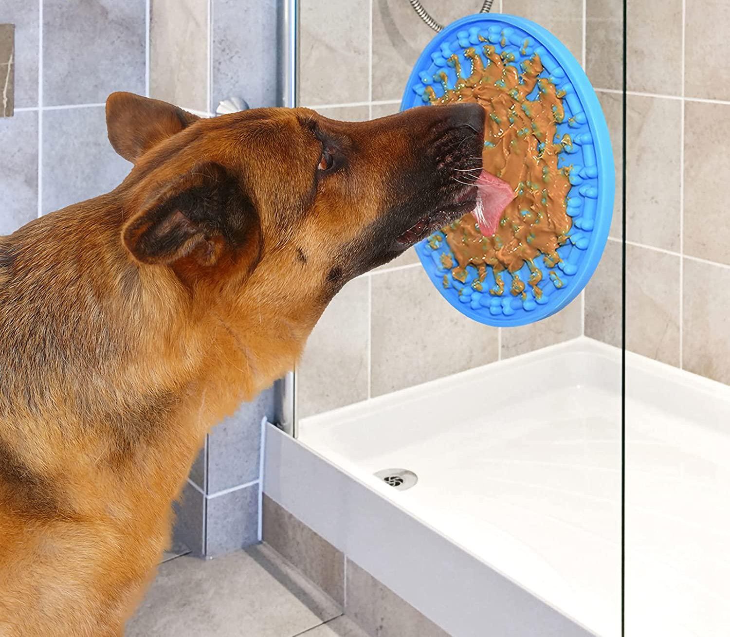Details: This dog feeder is exactly what I needed to get Mango to chill the heck out during baths. You just have to smear some peanut butter over it and stick it to your tiles or the side of your tub to keep your dog distracted long enough to give them a good scrub down.