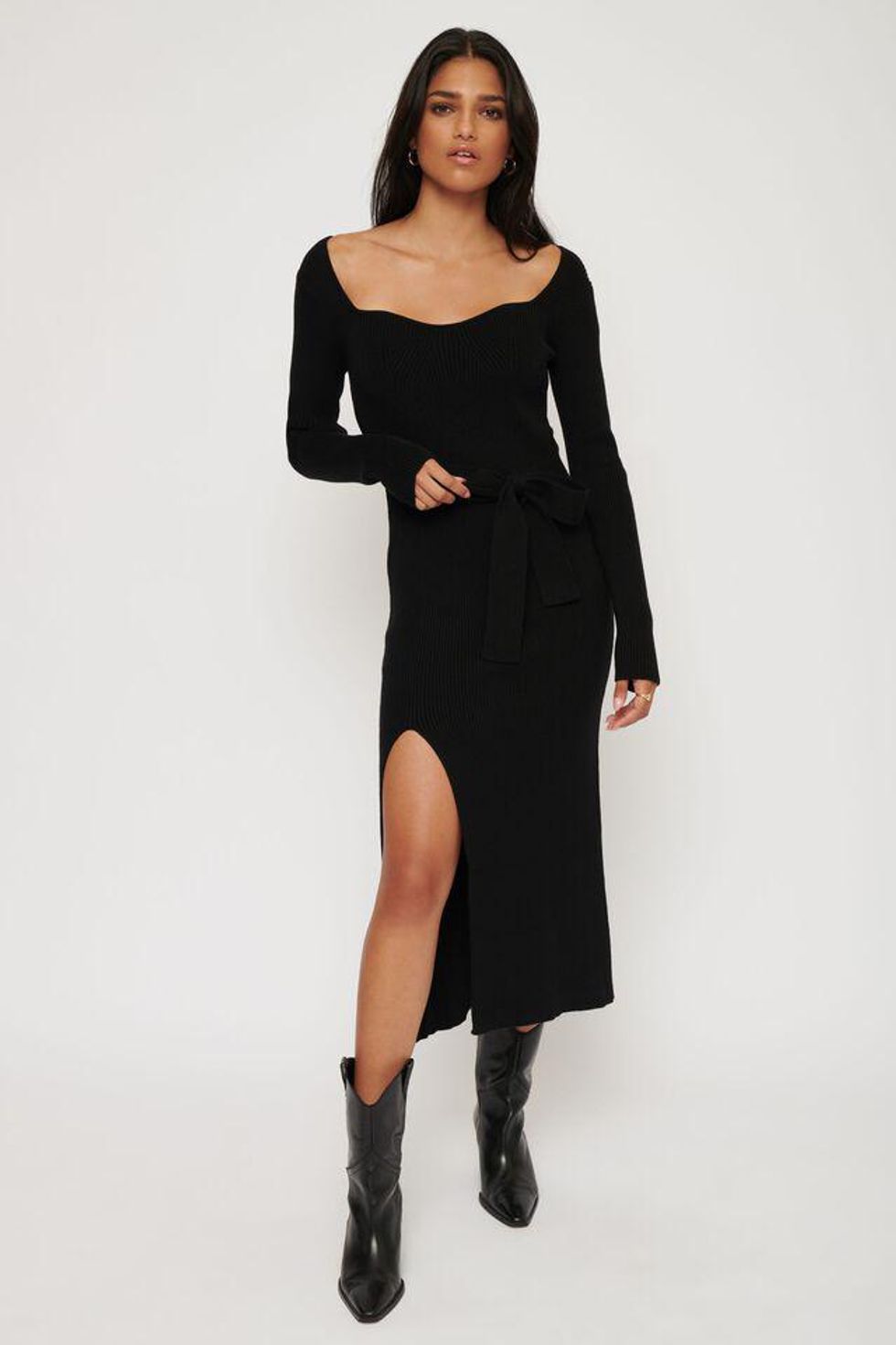 Details: Long and luxurious? Check! This maxi sweater dress will look ultra-chic at your next holiday dinner party. It has a fabric belt you can tie at the back or the side, depending on your preference. You can get it in brown, cream and black in sizes 2XS to XL.