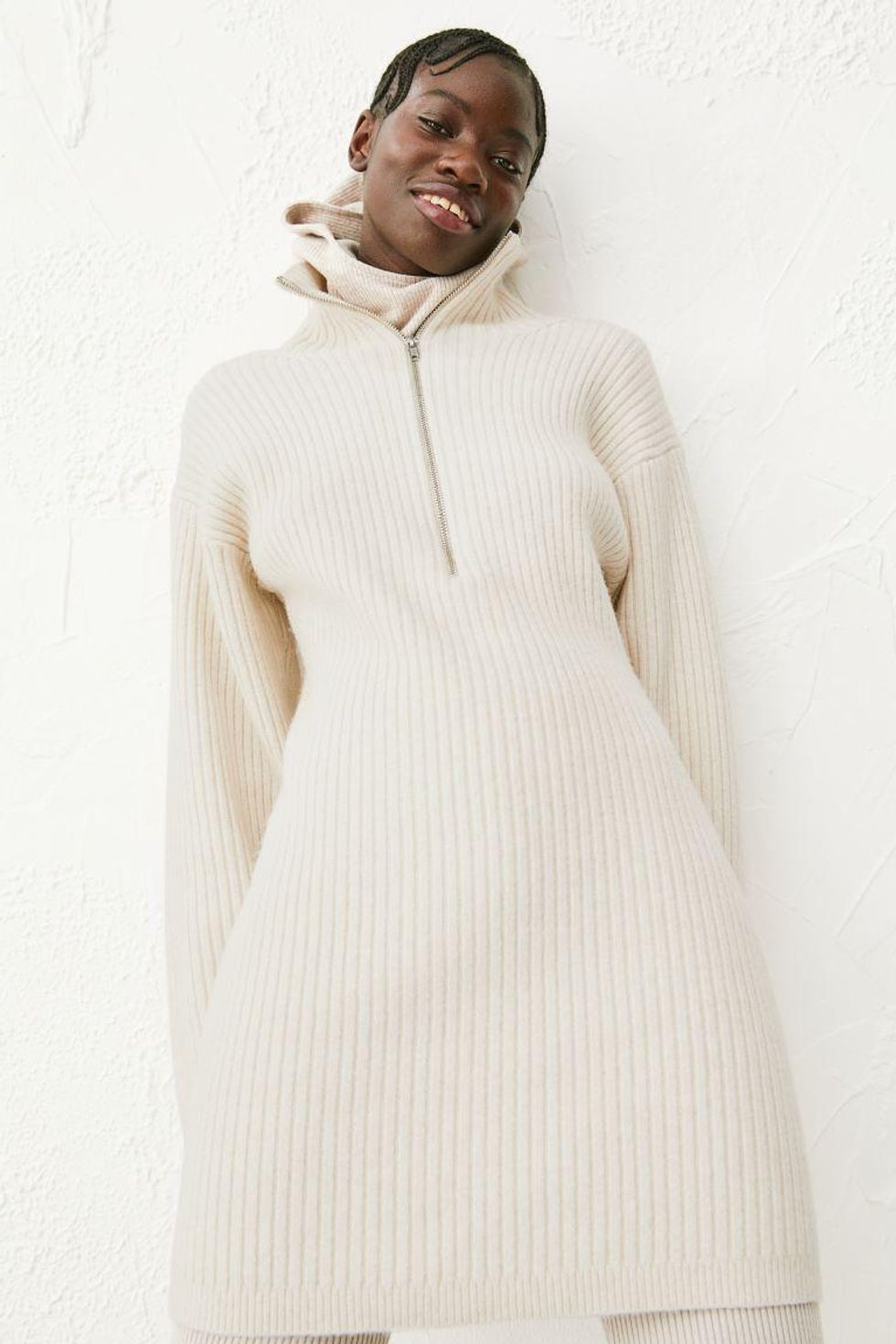 Details: With a stylish half-zip, this light beige ribbed sweater dress will be your next go-to outfit this winter. It's available in sizes XS to 2XL.