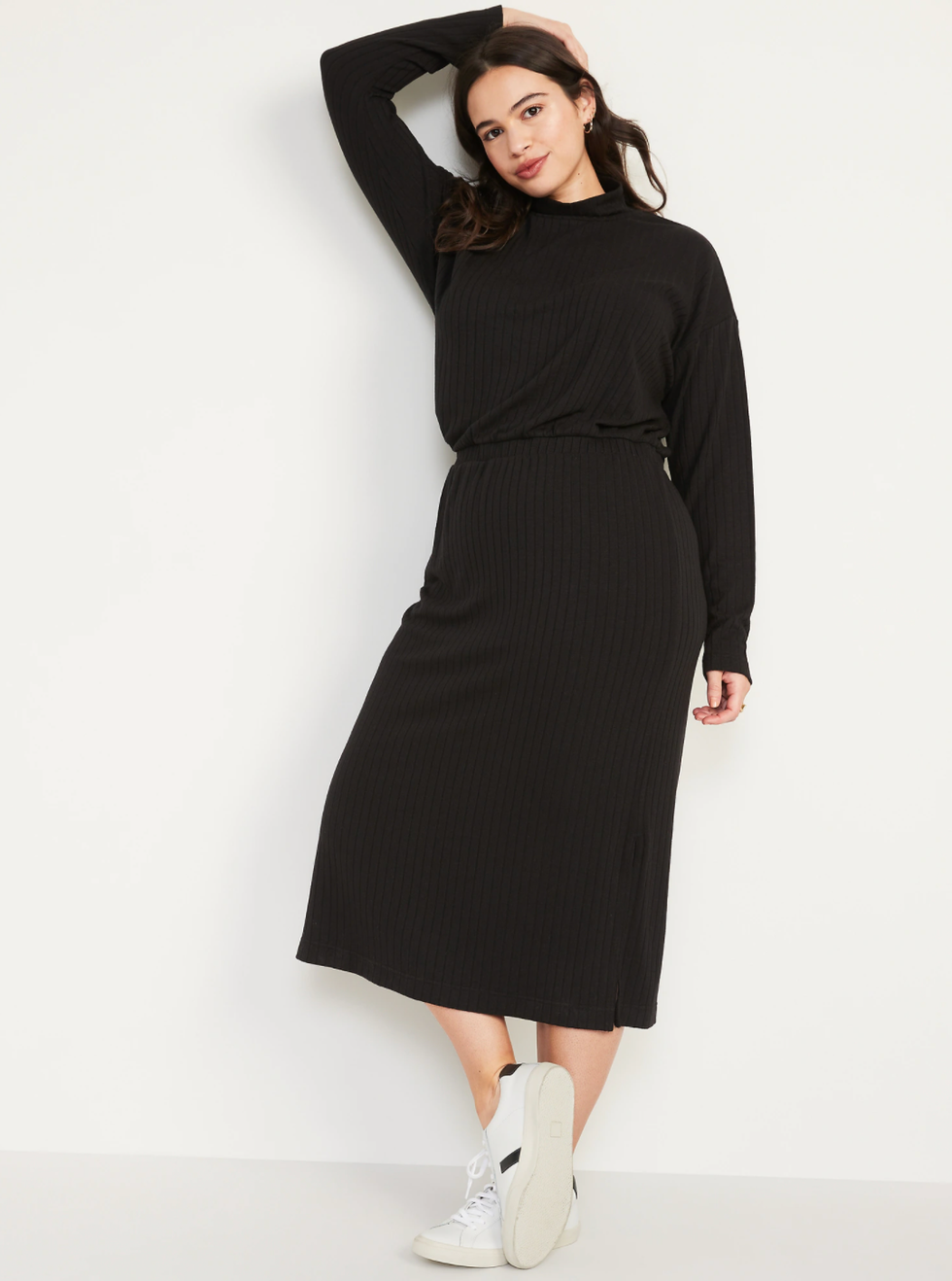 Details: This rib-knit sweater dress is comfy, casual and something that'll be super easy to throw on for just about any occasion. It's available in sizes XS to 2XL.