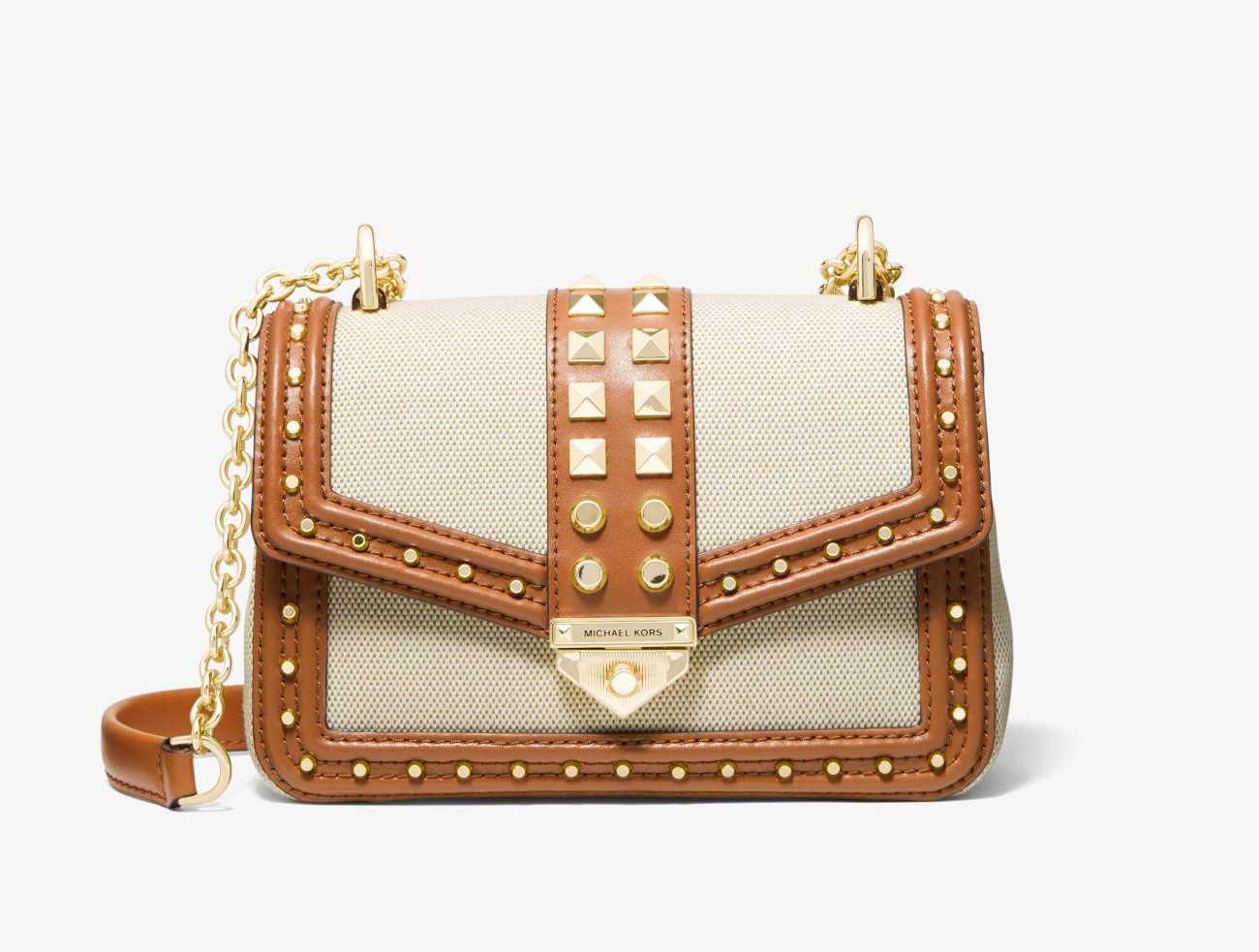 Michael Kors SoHo Small Studded Leather And Canvas Shoulder Bag