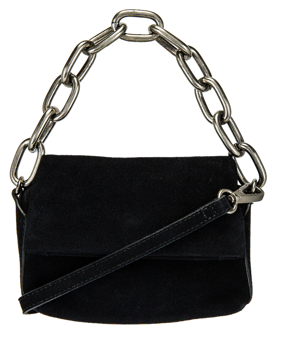 Details: Chunky chains and suede is the perfect combo for fall. This bag has card slots on the inside, so you don't need to pack your wallet.