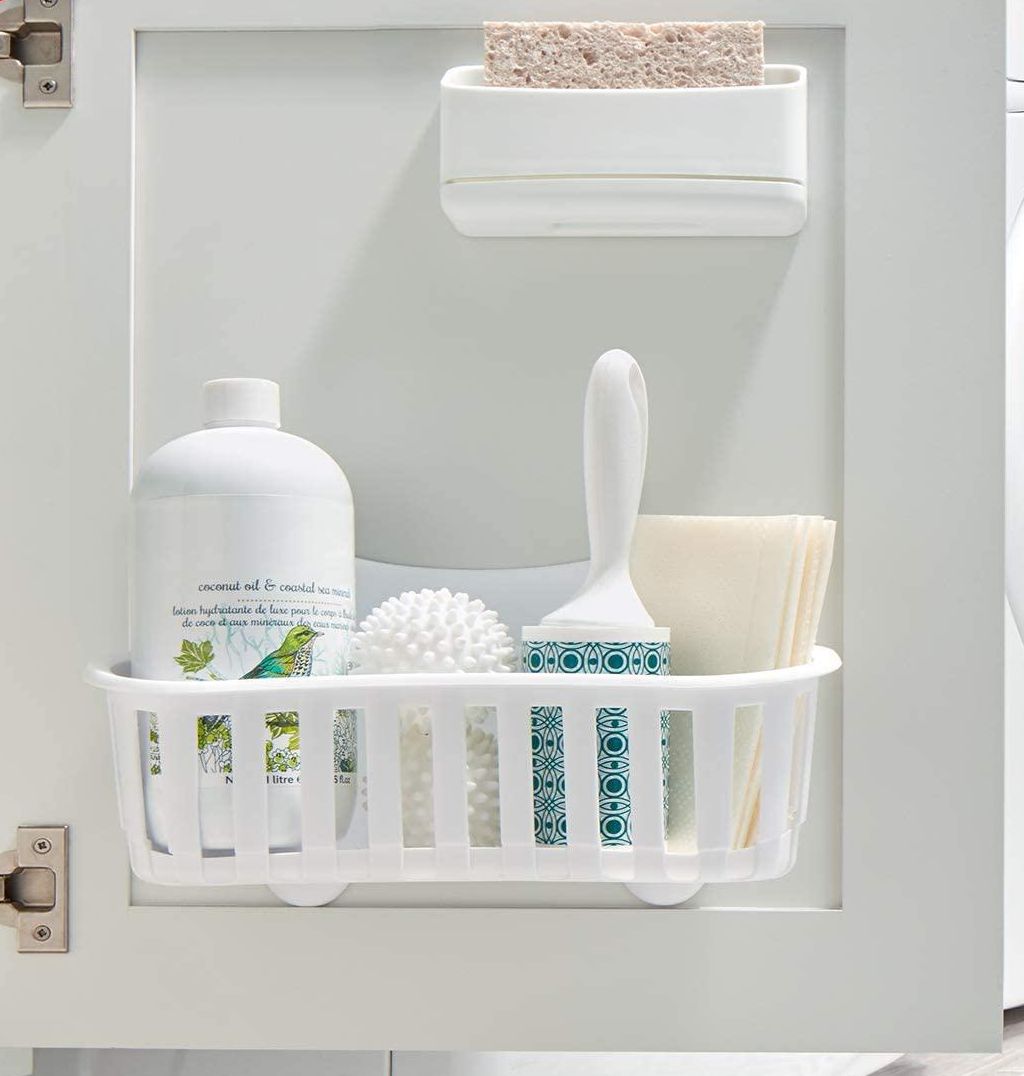 This cabinet caddy will allow you to stash all of your sponges and cleaning supplies on the back of a cupboard. That way, they'll be out of the way but still within arms reach when you need them.