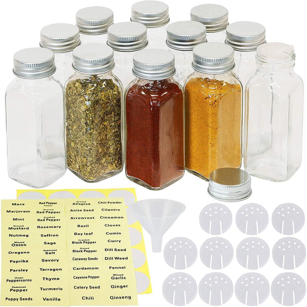 You can get your spice cupboard under control with this snazzy spice jar set. It comes with 12 jars, 48 spice labels, 20 blank labels, and one funnel.