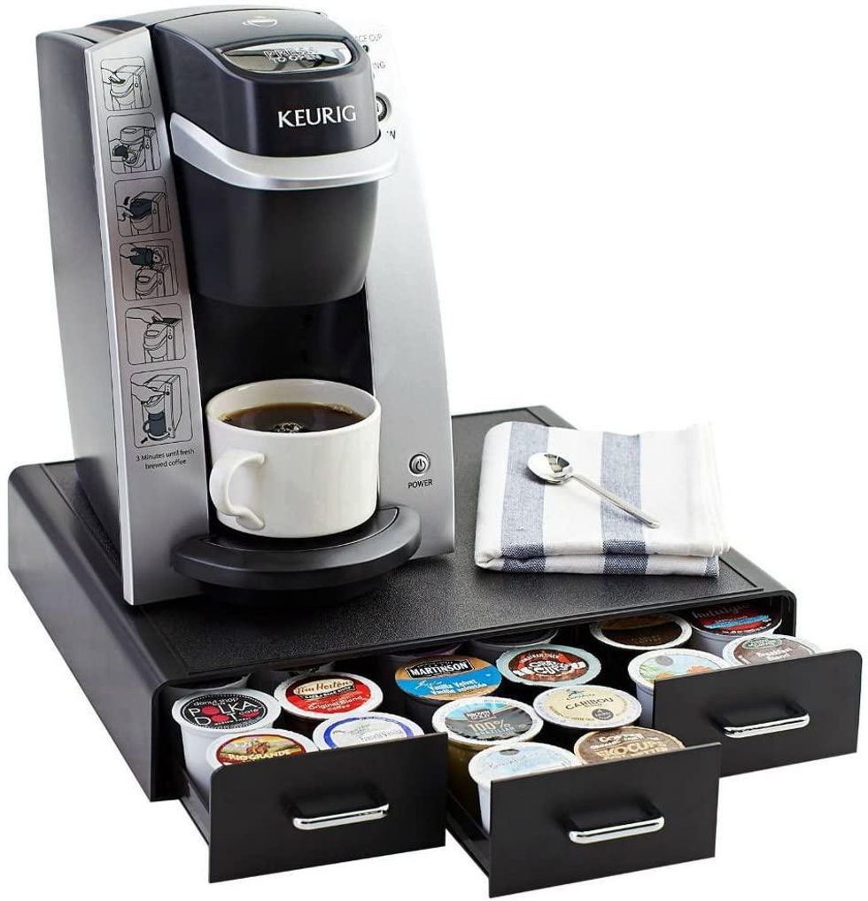 If you have a Keurig but can't seem to keep your pods in order, you might want to invest in a pod storage drawer. It'll keep those unsightly boxes off of your counter and elevate the overall look of your kitchen.