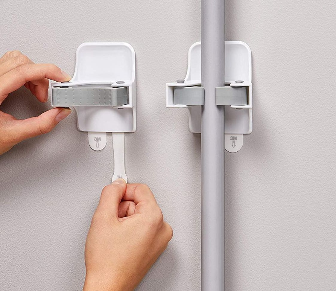 If you're constantly knocking over your brooms and mops, consider picking up a pair of Command mounts. They'll keep your cleaning cabinet tidy and free up some space.