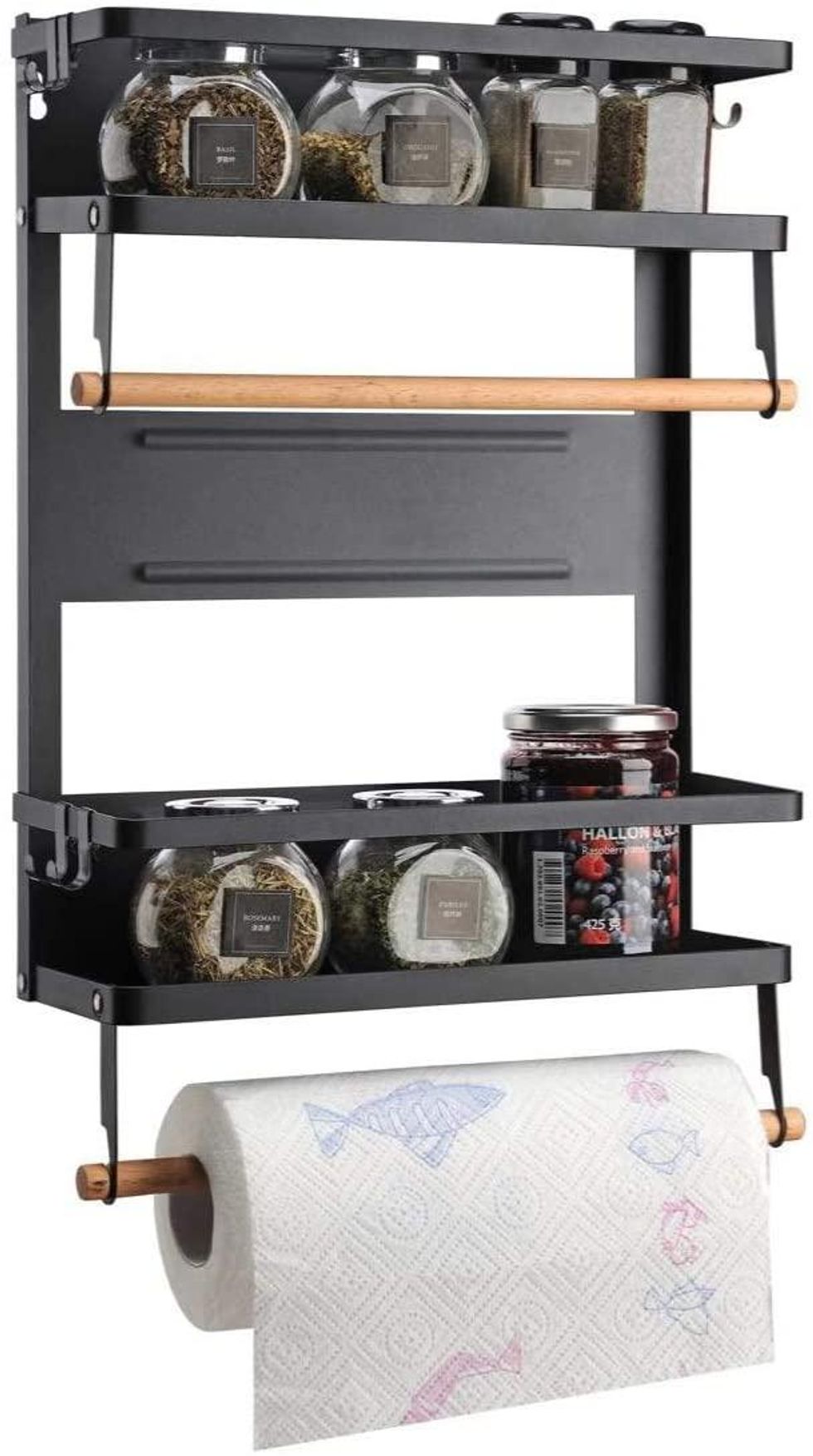 Take advantage of your refrigerator's magnetic exterior and create some extra storage space with this magnetic paper towel holder and shelf.
