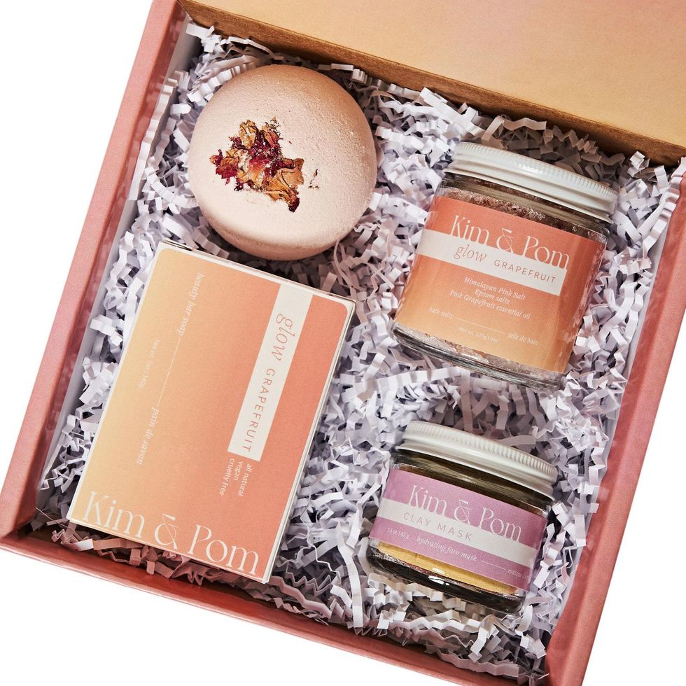 Kim & Pom is a Canadian small business that specializes in handmade self-care and wellness products. This refreshing grapefruit scented set comes with a bath bomb, clay mask, bar soap and your choice of either bath salts or a flower bath. You also have the option to add an exfoliating mitt for a few extra bucks.