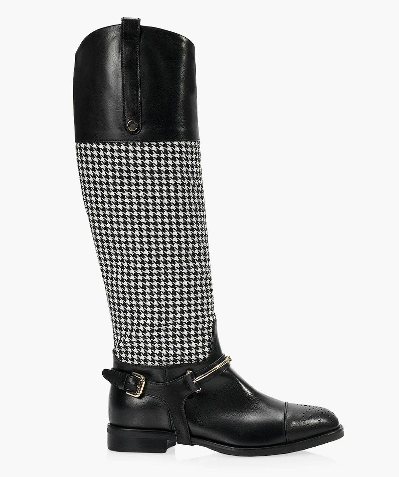 These leather houndstooth boots are so stylish and unique. They have a gold and leather riding buckle so you can live your best equestrian-chic life.