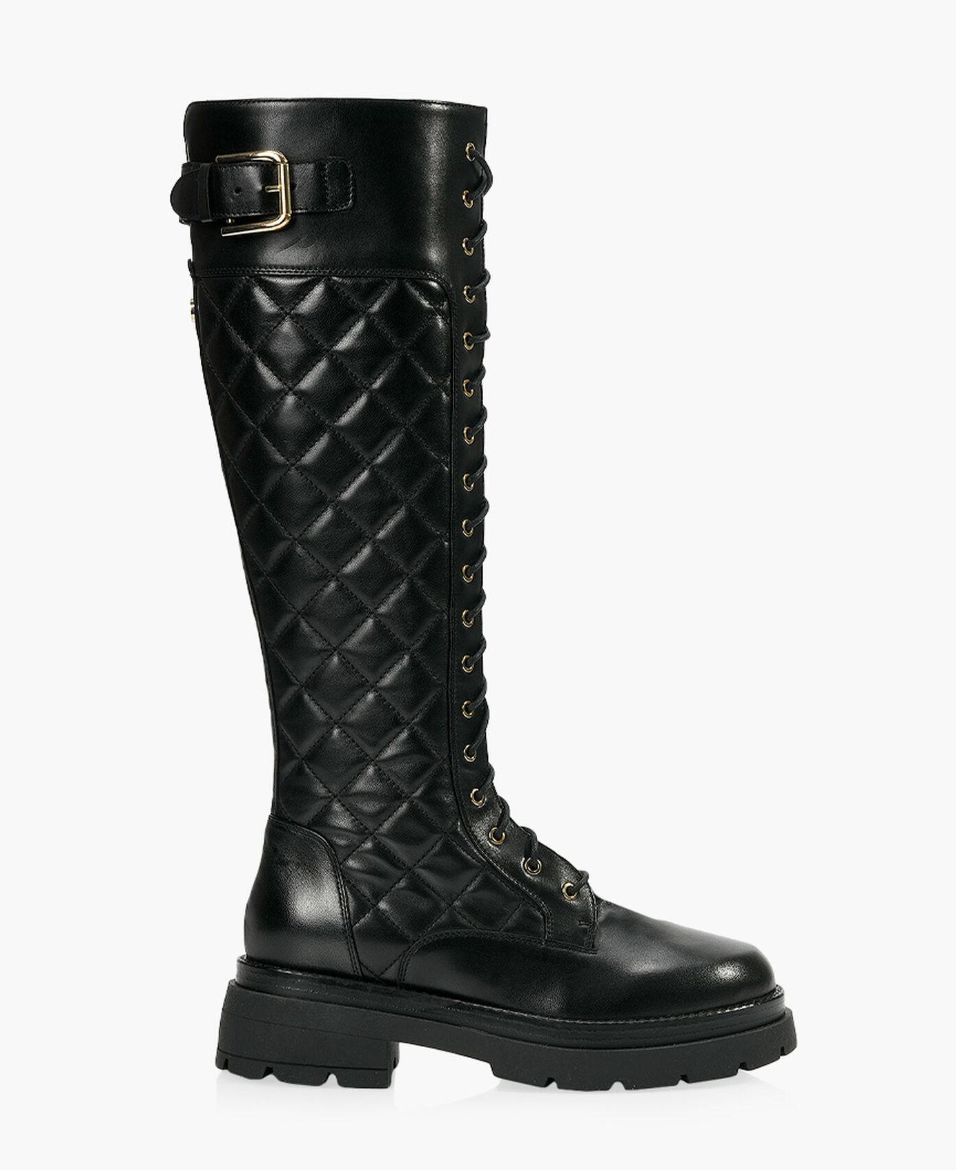 Another cute lace-up option is these quilted platform boots from Browns. They're made of leather while the soles are rubber. There are adjustable calf straps to keep them secure.