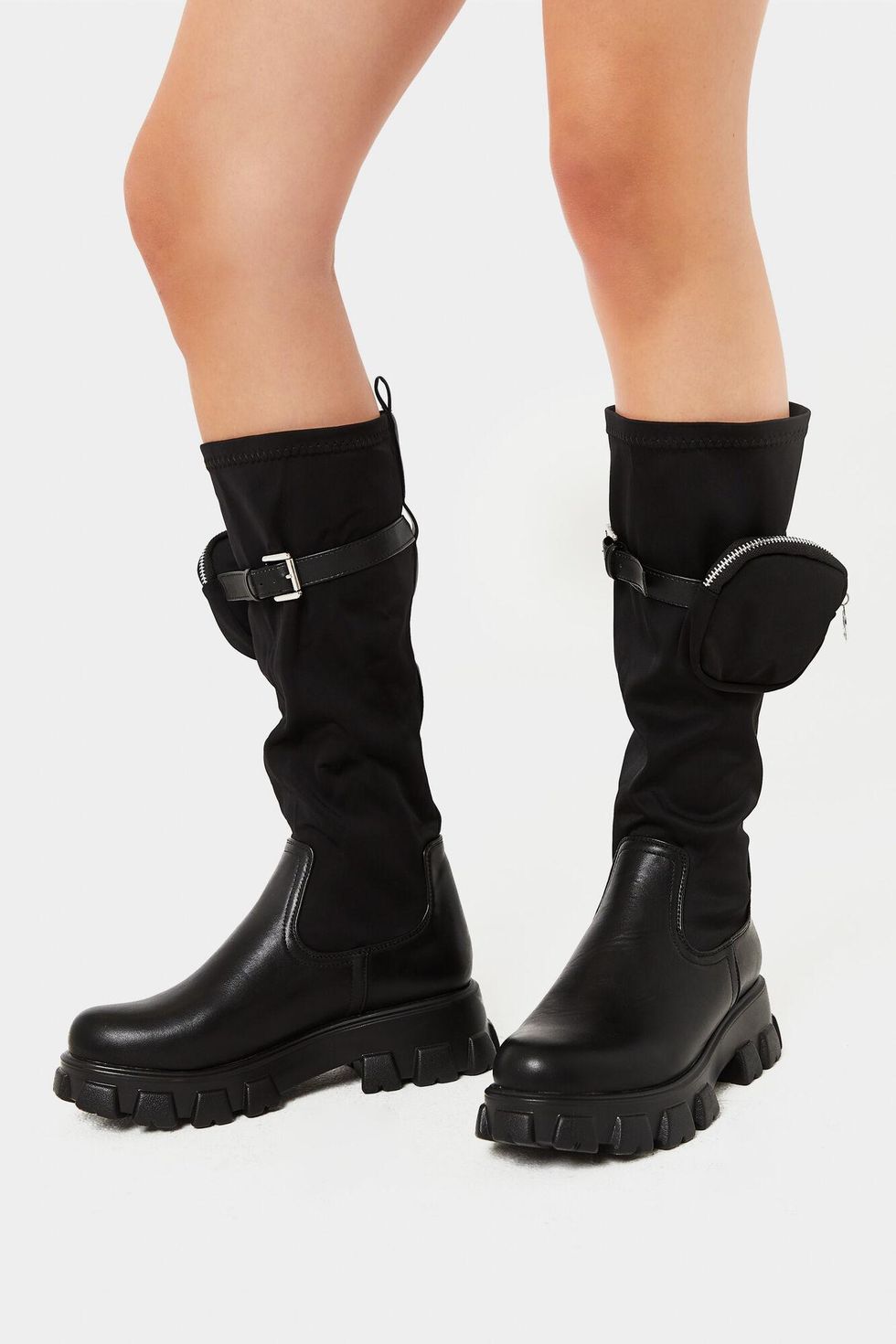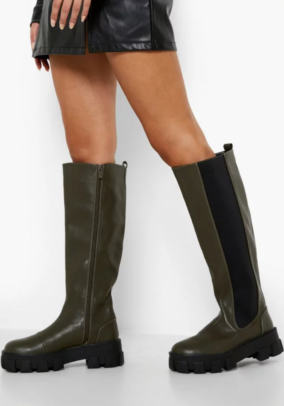 Boohoo Cleated Chunky Sole Knee High Chelsea Boots