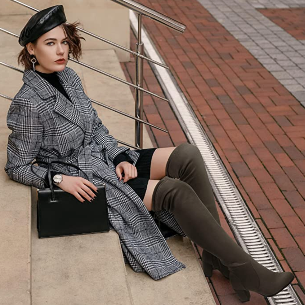 These suede boots on Amazon can be extended right above the knee with a drawstring around the top that you can tie so they won't fall down. They're faux fur lined to keep you warm and you can get them in 16 different colours.
