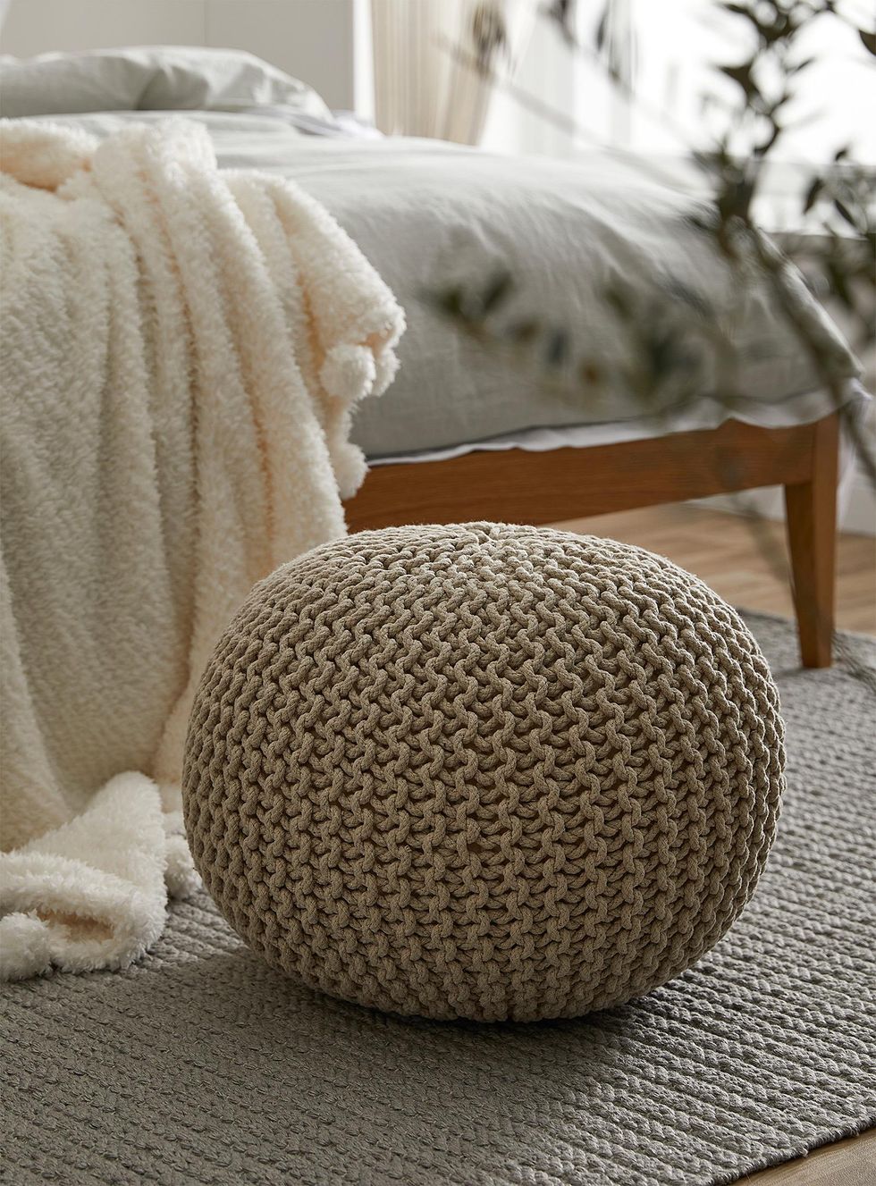 Details: Chunky knits aren't just for sweaters and this pouf is a good way to incorporate the texture into your home decor. You can use it as an extra seat, footrest or as a side table in the living room.