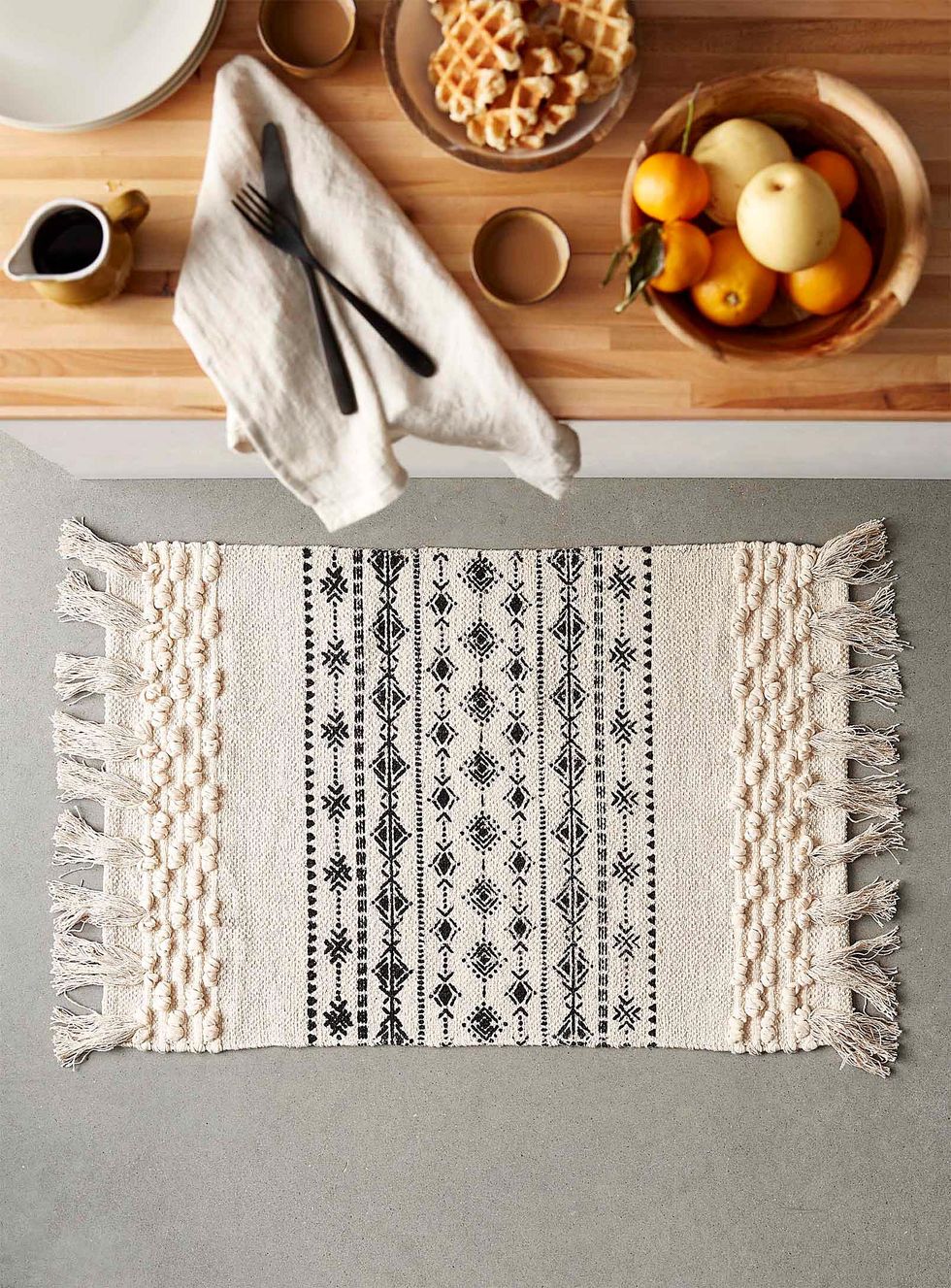 Details: Cooler temperatures can mean cold feet for those with uncarpeted floors. This cute and artisanal rug will help keep your tootsies warm when you get out of bed in the morning.