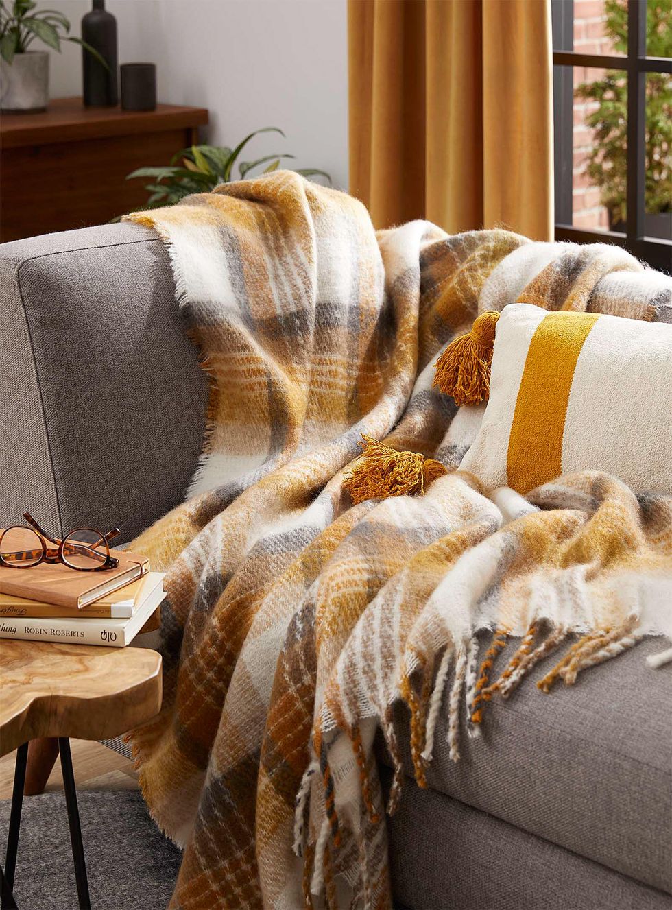 Details: If you love patterns, then you can grab this chalet-inspired plaid blanket. It'll add a touch of warmth and texture with the long rolled fringe at the ends.