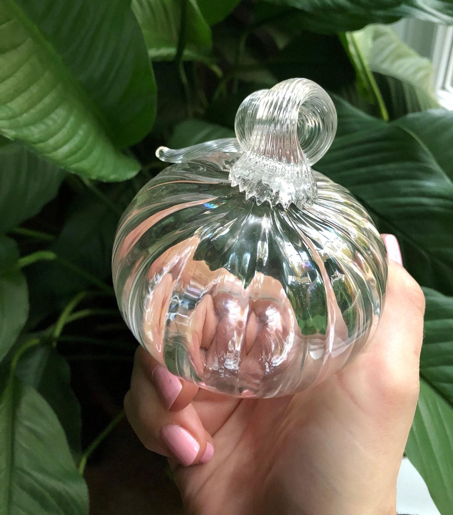 Details: This hand-blown glass pumpkin is a subtle and delicate way to add some seasonal flair to your space without clashing colours.