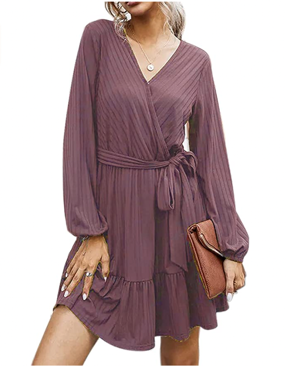 Details: Here's an adorable ruffle wrap dress from Amazon Canada that ties at the waist for an adjustable fit. It's currently available in four colours in sizes small to 2XL.