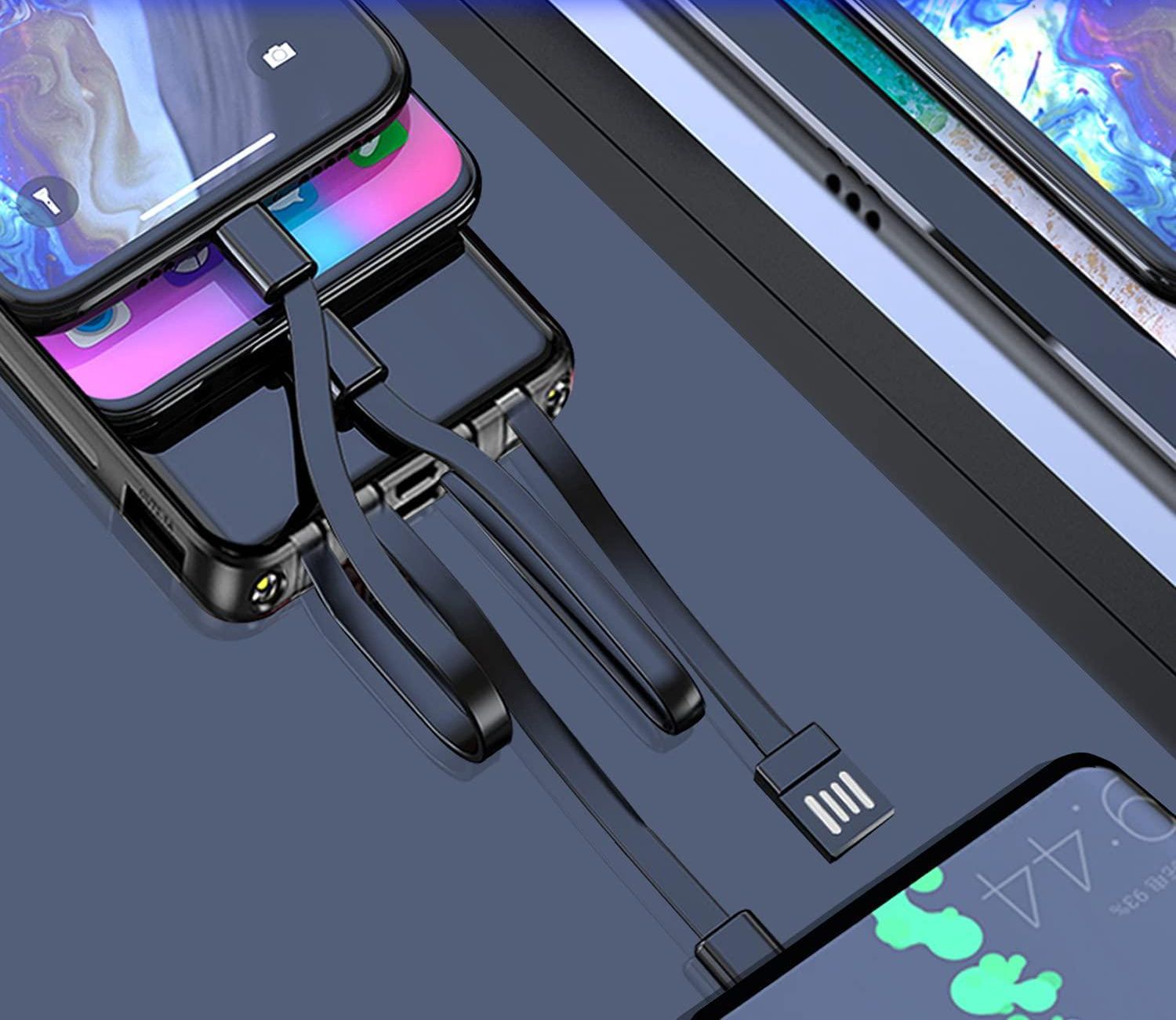 This is one of the coolest portable chargers we've ever seen because it has cables already built into it and can charge up to four devices at the same time. It even has a built-in flashlight!
