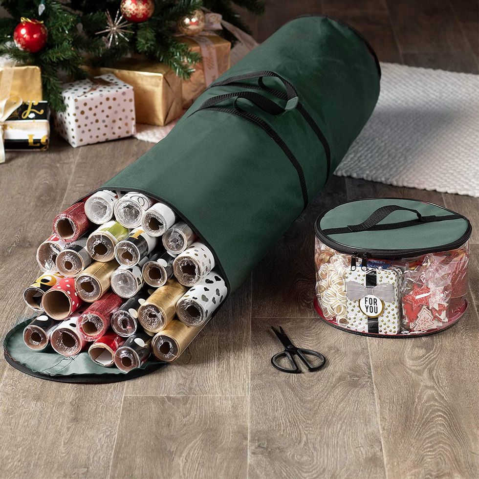 Details: If you're determined to save your leftover gift wrap this holiday season, keep it all neat and tidy with this handy storage tote. It comes with a smaller compartment that'll let you stash your ribbons and bows in, too!