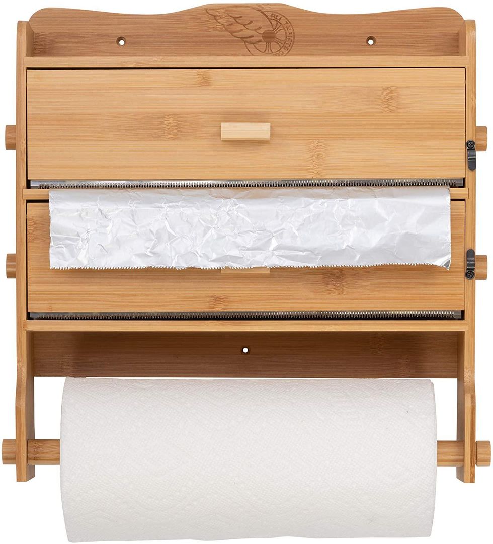 Bamboo Kitchen Wall Mount For Paper Towel, Aluminum Foil, Plastic Wrap & Spices