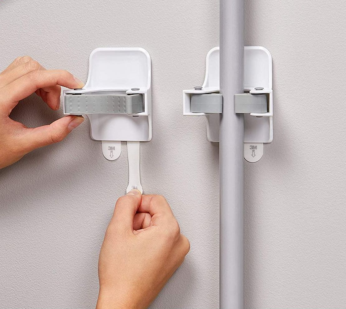 Details: If you're constantly knocking over your brooms and mops, consider picking up a pair of Command mounts. They'll keep your cleaning cabinet tidy and save you some space.