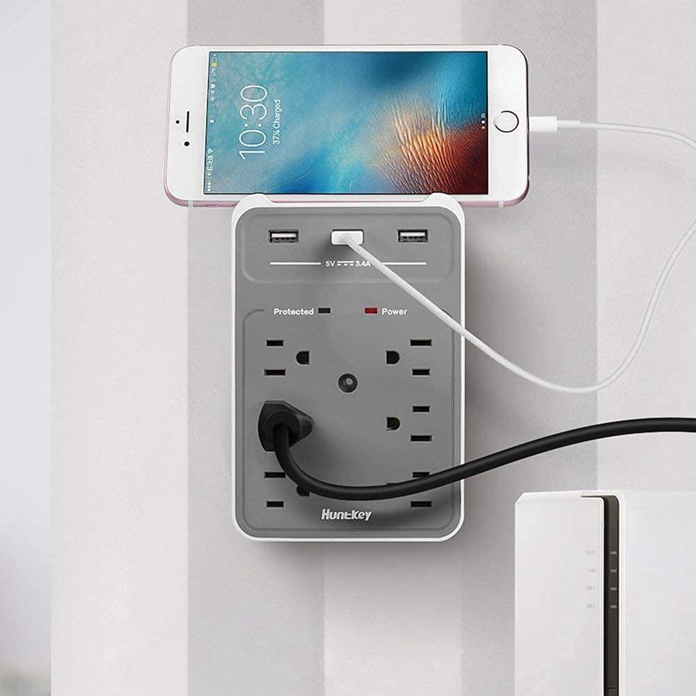 Details: Safely charge up to nine devices with this multi-plug outlet extender. It won't collect a ton of dust like clunky power bars that are left on the floor and it'll help you make the most out of a single outlet.