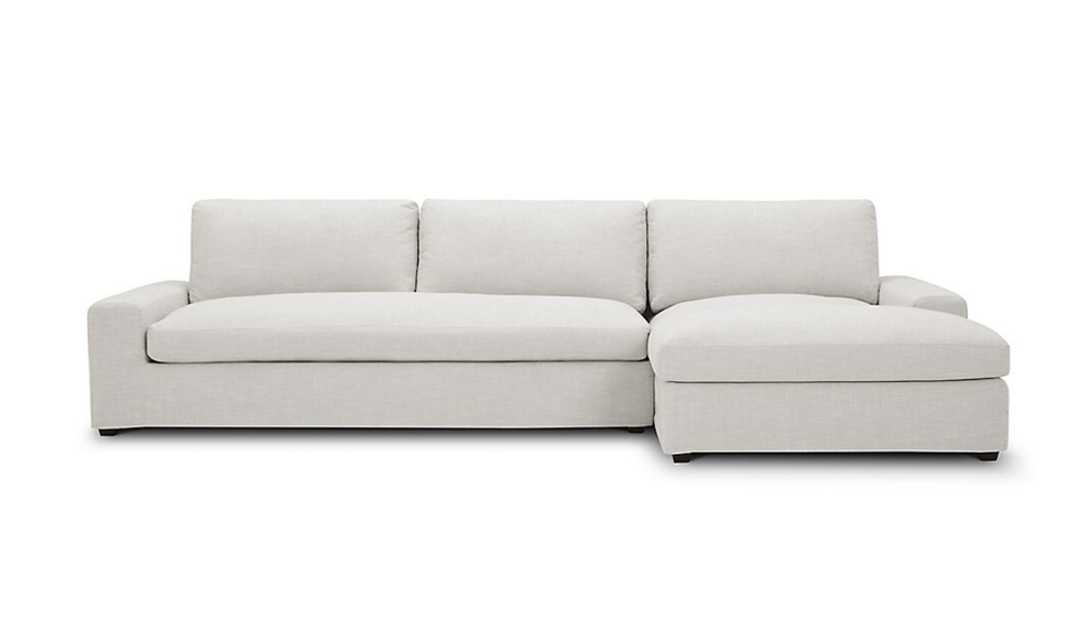 The Cozey sectional in ivory comes in a bunch of different configurations, just like the original RH one. The main difference is that this one has raised legs which actually make it easier to clean. You can also buy a regular sofa or individual modules.