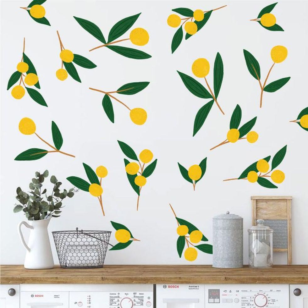 Details: This fruity design has us craving for a pitcher of sangria on a patio right now. You can create an accent wall in your kitchen or bathroom in a matter of minutes. These tangerine stickers are available in packs of five or ten in small, medium or large.