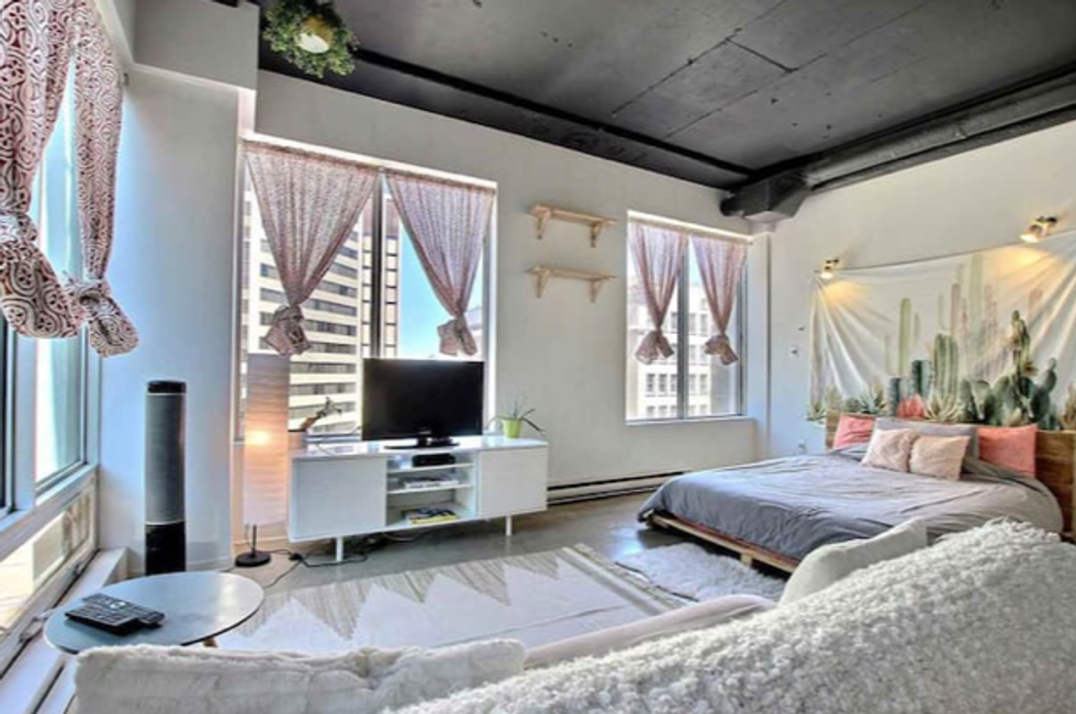 Why You Need To Go: This tiny 555-square-foot open concept loft has huge windows which means the natural sunlight lasts all day long. Right in the heart of downtown, you can literally walk to anything you could need.
