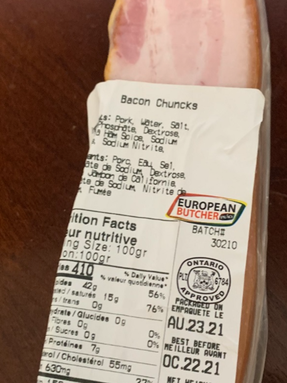 On September 8, the CFIA and European Butcher recalled both Bacon "Chuncks" and Smoked Side Bacon Slices from the marketplace due to possible Listeria monocytogenes contamination.