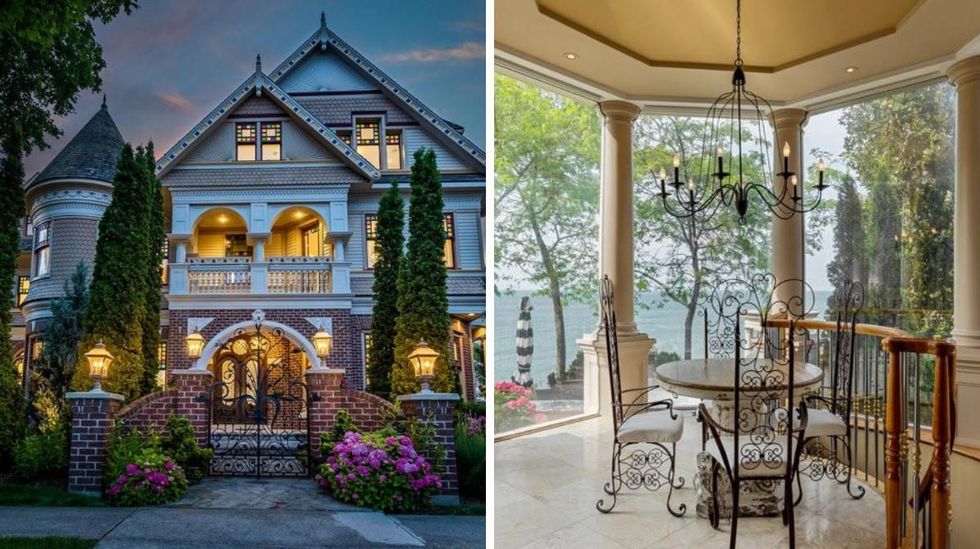 Description: This Queen Anne manor sits right on the bank of Lake Ontario and features "stained glass windows, turrets, covered wrap-around porches and balconies, elaborate gables, and monumental chimneys."