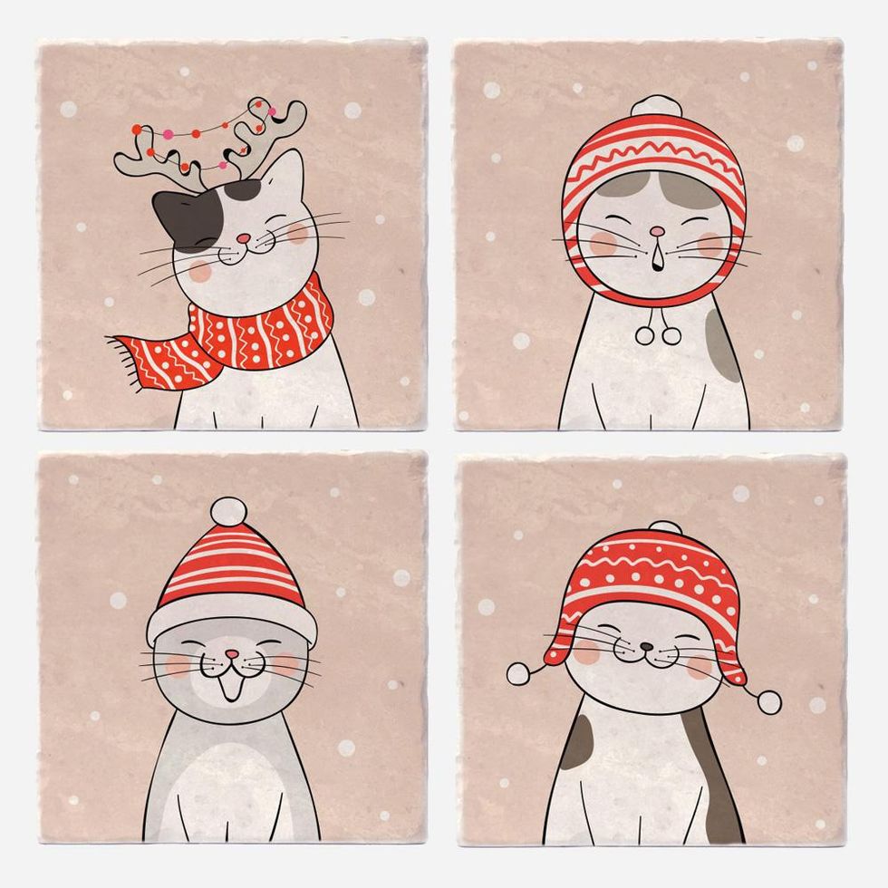 Based in Almonte, Ontario, Versatile has a wide selection of ceramic coaster tiles with fun designs, or you can customize them with your own images for the ultimate personalized gift. These carolling kitties are both cute and festive.