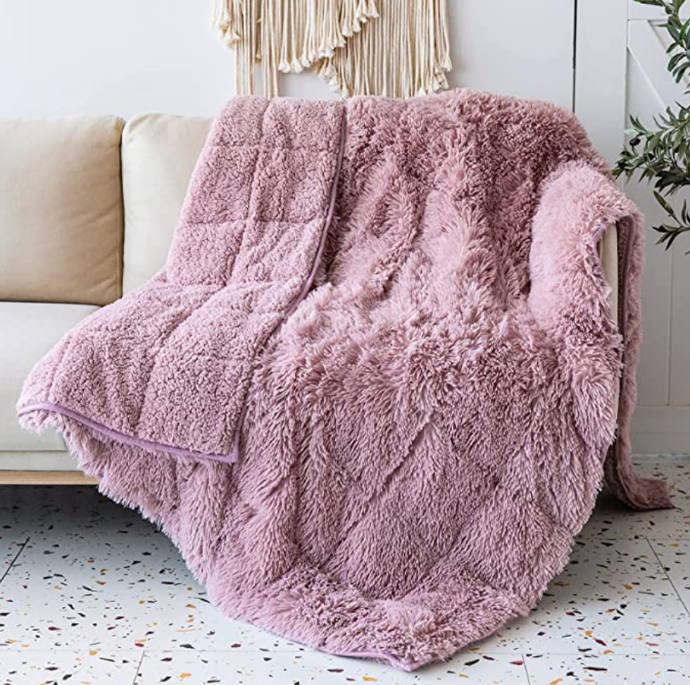 Details: This sherpa blanket is the #1 best-selling blanket on Amazon. It's lighter than most weighted blankets because it's only five pounds rather than the usual 15 pounds. It comes in eight colours and four sizes from twin to king.