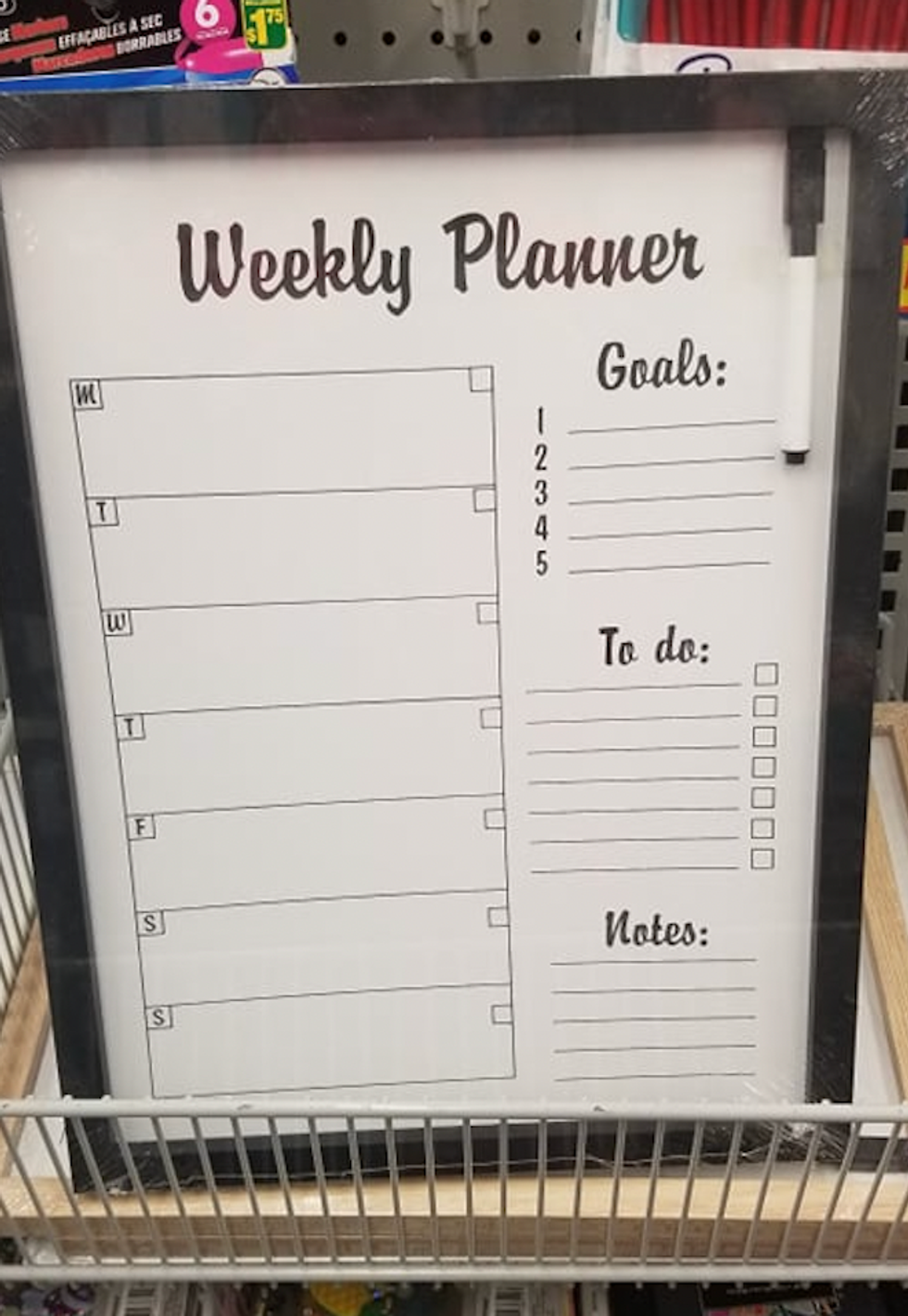 This giant whiteboard can be filled out at the beginning of each week, so you'll be able to take a quick glance at it and know what you've got planned for the day. It comes with a dry erase marker and can be mounted on the wall like a picture. For $4, it's definitely a steal!