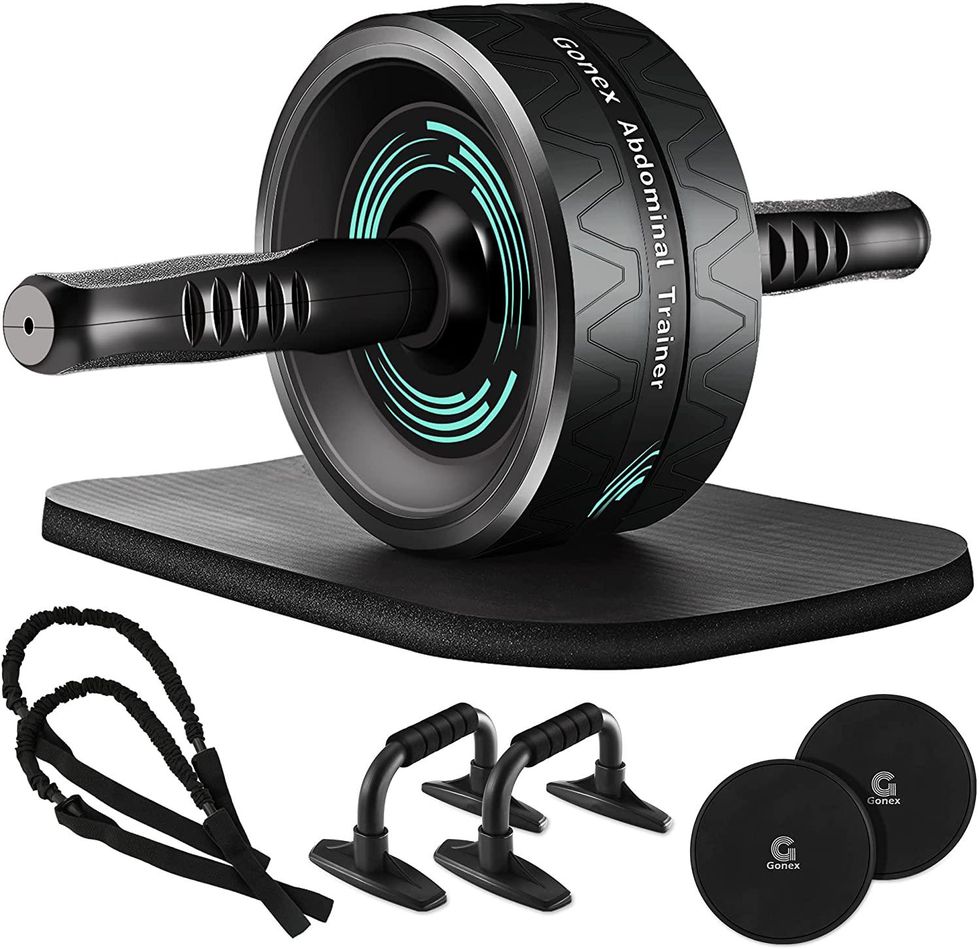 If you want to take your ab workouts to the next level, this abdominal trainer set will give you the means to do just that. It's ultra-wide for extra stability and comes with a mat, push-up handles, resistance straps and a pair of sliders.
